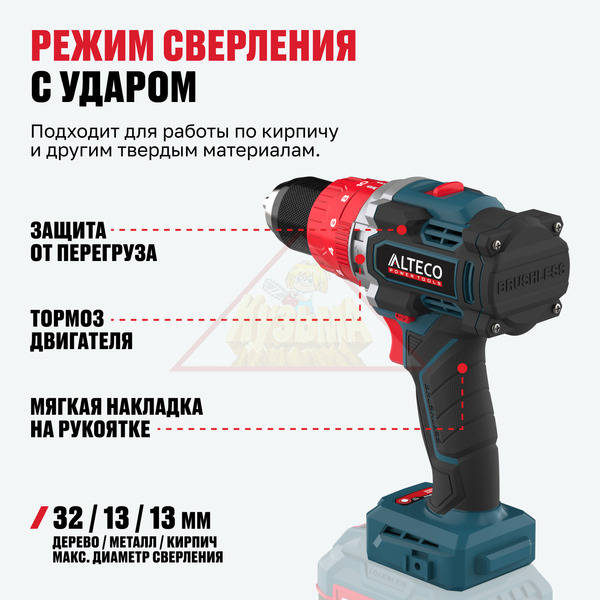 Макс. диаметр сверления (кирпич) - 13 мм