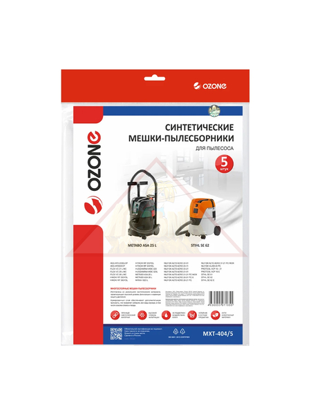Мешки-пылесборники синтетические для пылесоса OZONE MXT-404/5, 5 шт. — высококачественные сменные мешки для эффективного сбора пыли и мусора. Изготовлены из прочного синтетического материала, который обеспечивает долговечность и максимальную фильтрацию мелких частиц. Идеально подходят для моделей пылесосов, совместимых с MXT-404, обеспечивая чистоту и удобство при уборке. Комплект из 5 мешков гарантирует длительное использование без частой замены.